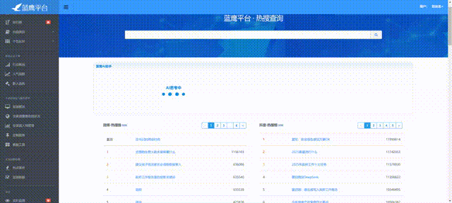 蓝鹰平台全新AI热搜板块,以数据取征询的力量帮帮客户成功,全面展现环节词相关热搜内容并归类阐发,对及时热搜内容进行智能阐发,通过AI手艺对热搜消息进行智能分类,全面领会高热事务全网关心内容取上榜时间,超800万微信号,各大自平台,获打消息取运营决策效率翻倍。